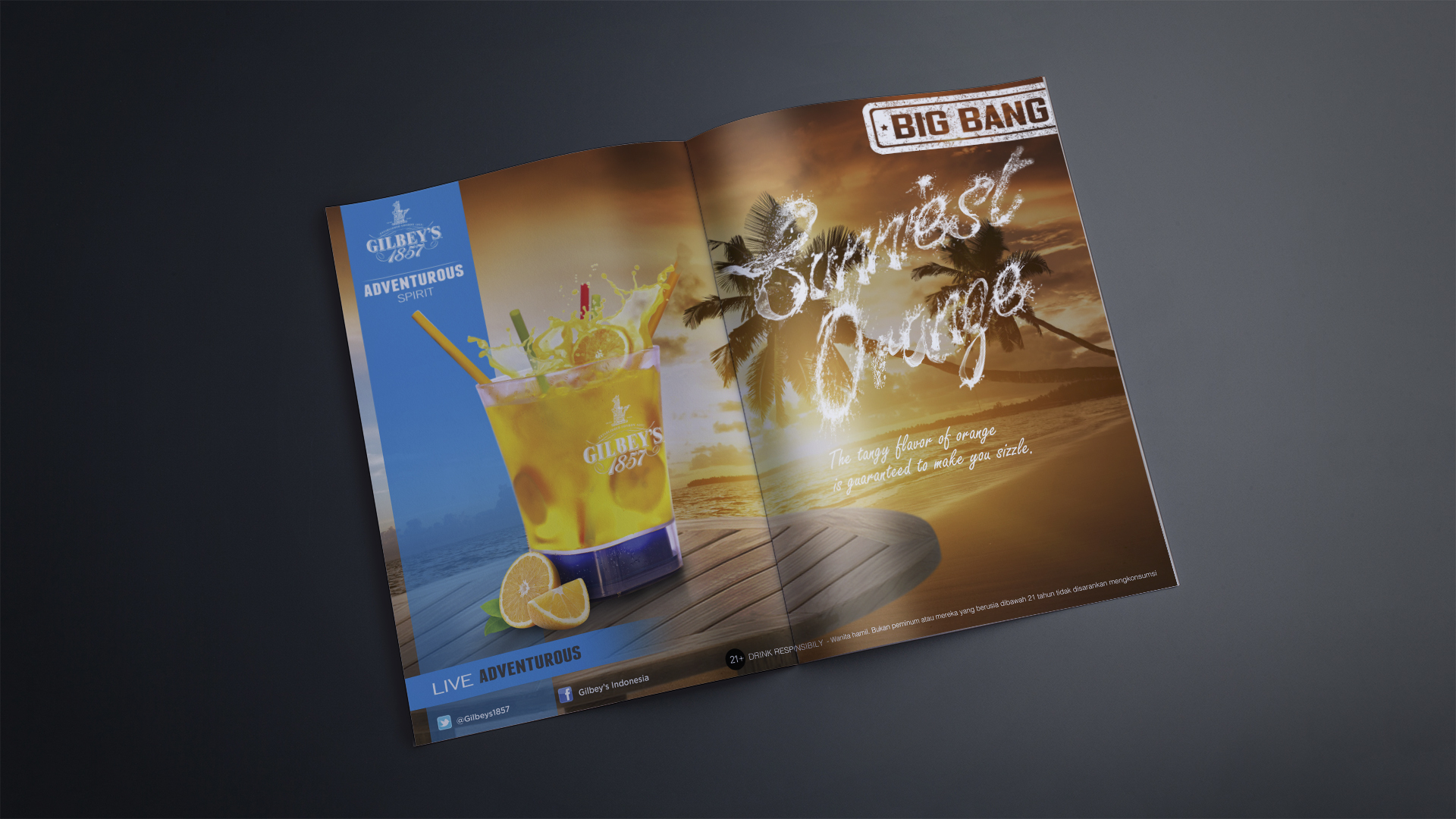 Gilbey’s 1857 ‘Adventurous Spirit’ is an alcohol brand established in London. Gilbey’s wanted to spread awareness about their new line of product, BIG BANG series, the 1st glowing drink in Indonesia. Their advertising kit involves the making of print Ads, a bumper for visual purposes and several after-event videos.