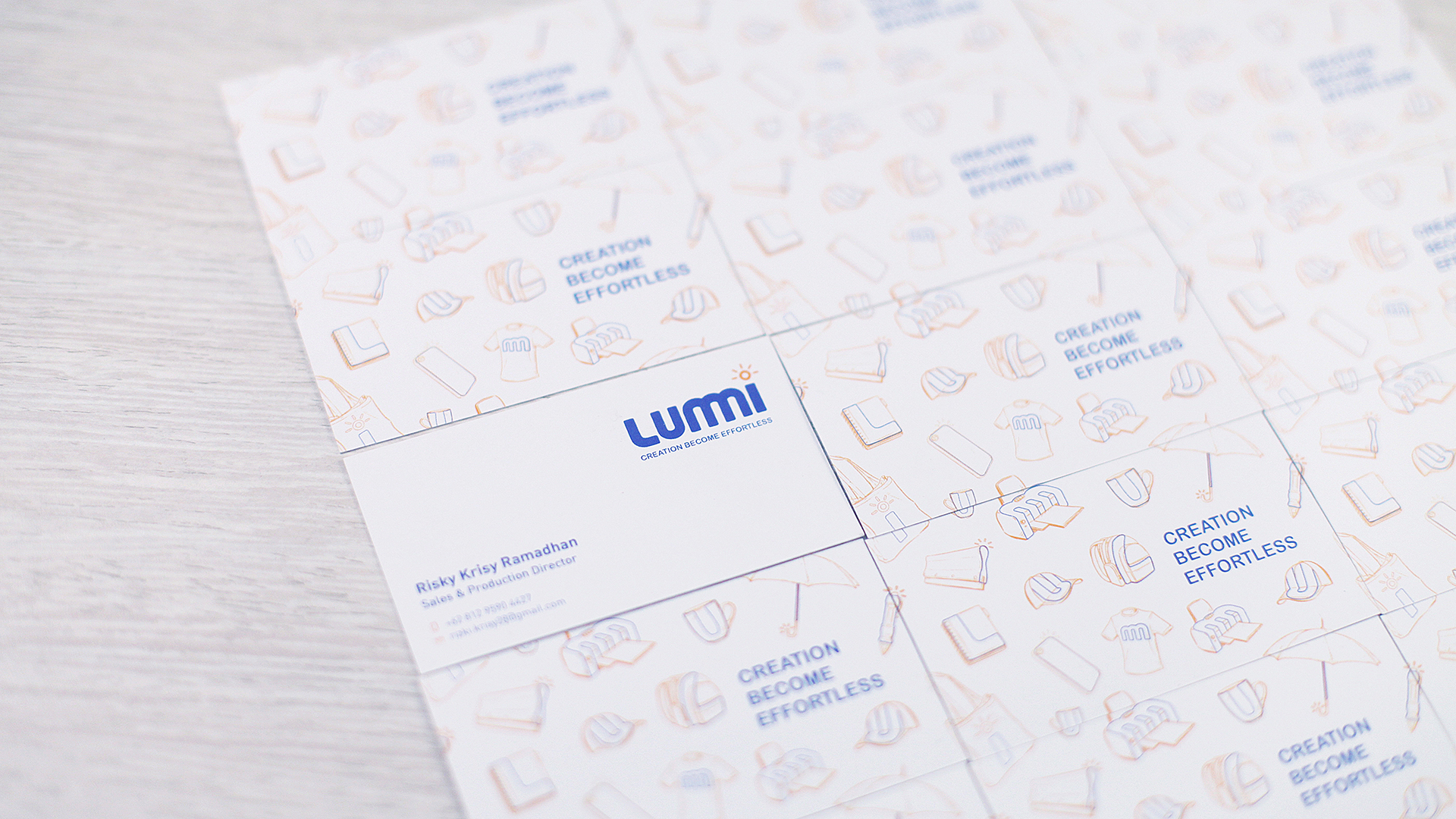 LUMMI is a company that specializes in the merchandise, souvenir and apparel production services. These services cover promotion events, gimmick production, branding purposes, and many more. In order to strengthen their identity, LUMMI needed a branding kit.